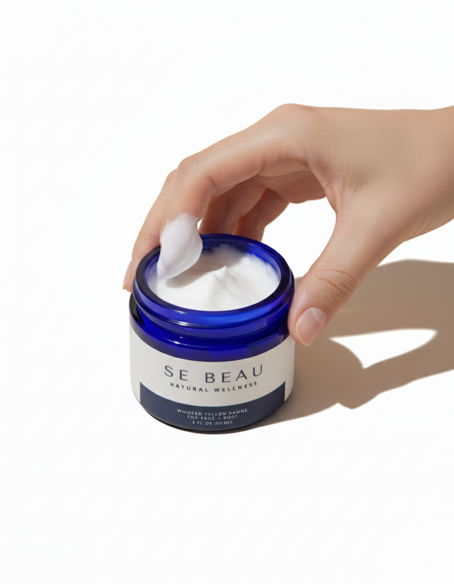 Grass-fed tallow melts into your skin, delivering a richness so profound it feels like a protective hug, replenishing your barrier with a supple, deeply nourished feeling.